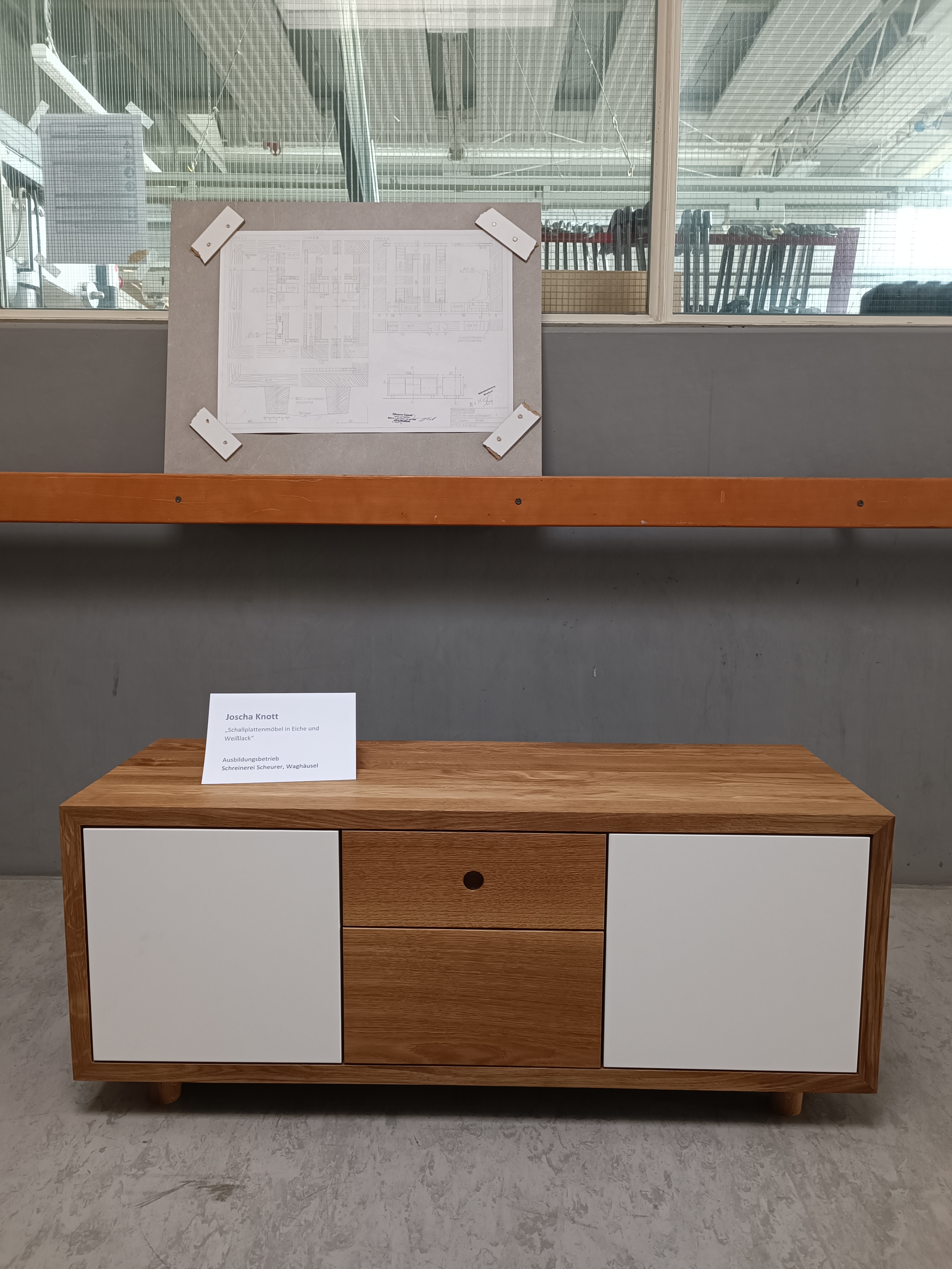 Joscha Knott „Schallplattenmöbel in Eiche und Weißlack“ Ausbildungsbetrieb Schreinerei Scheurer, Waghäusel