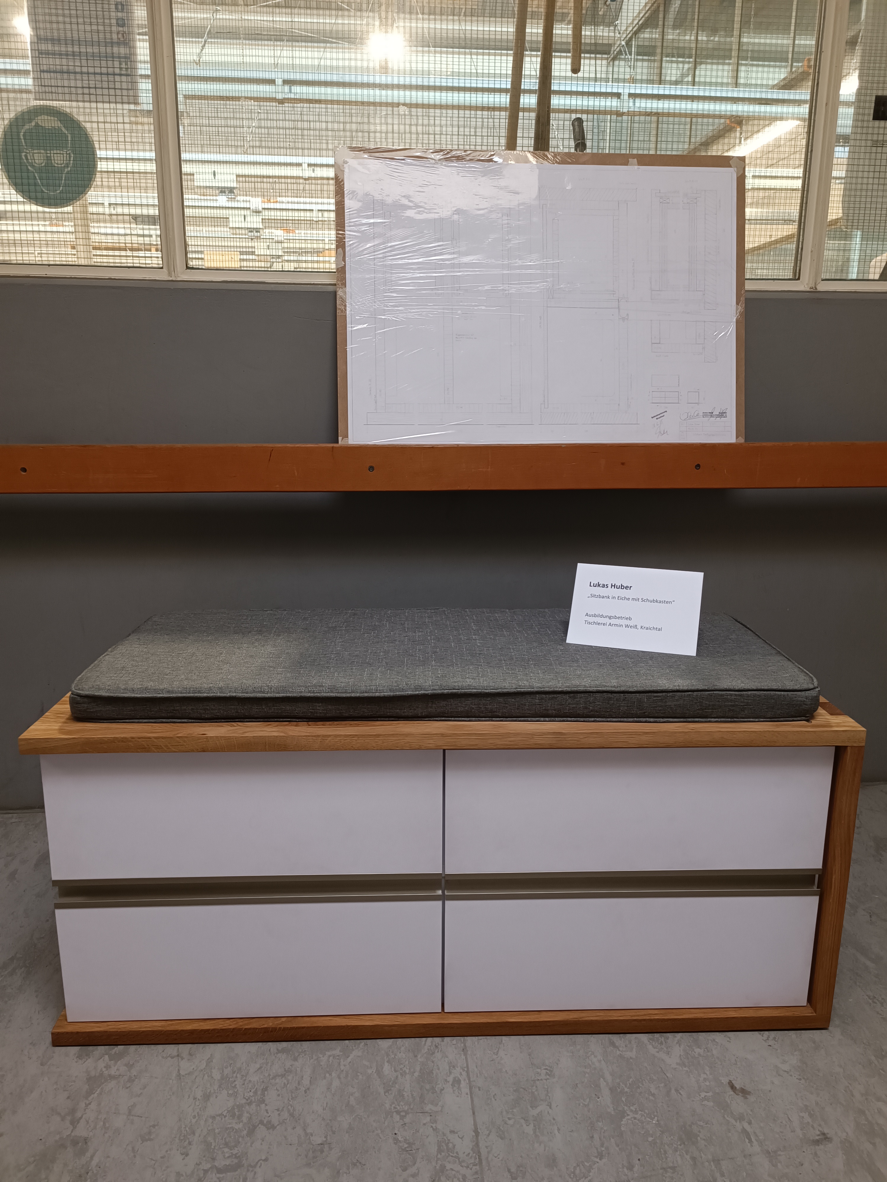 Lukas Huber „Sitzbank in Eiche mit Schubkasten“ Ausbildungsbetrieb Tischlerei Armin Weiß, Kraichtal