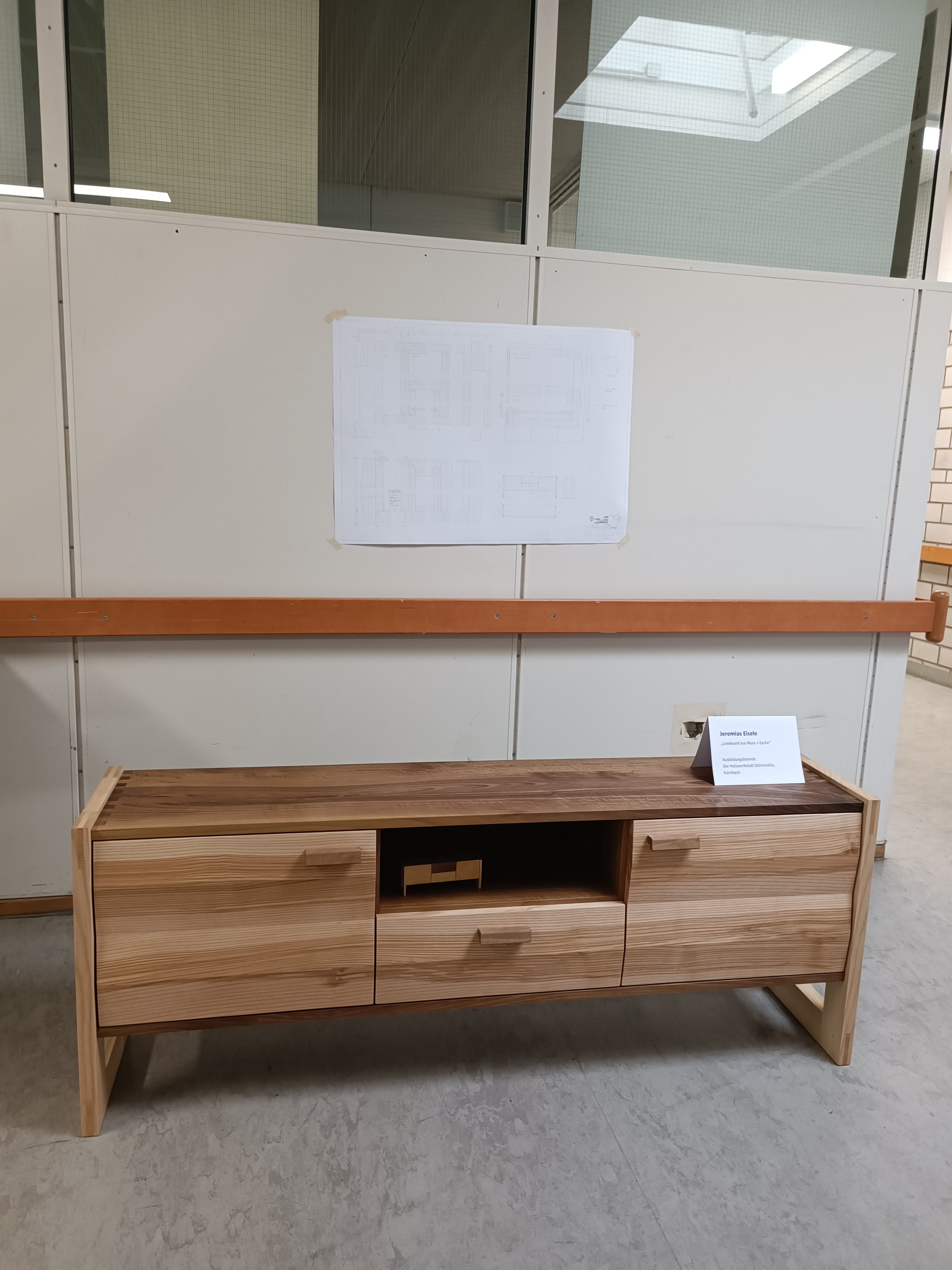 2. Preis Jeremias Eisele „Lowboard aus Nuss + Esche“ Ausbildungsbetrieb Die Holzwerkstatt Störrmühle, Kürnbach