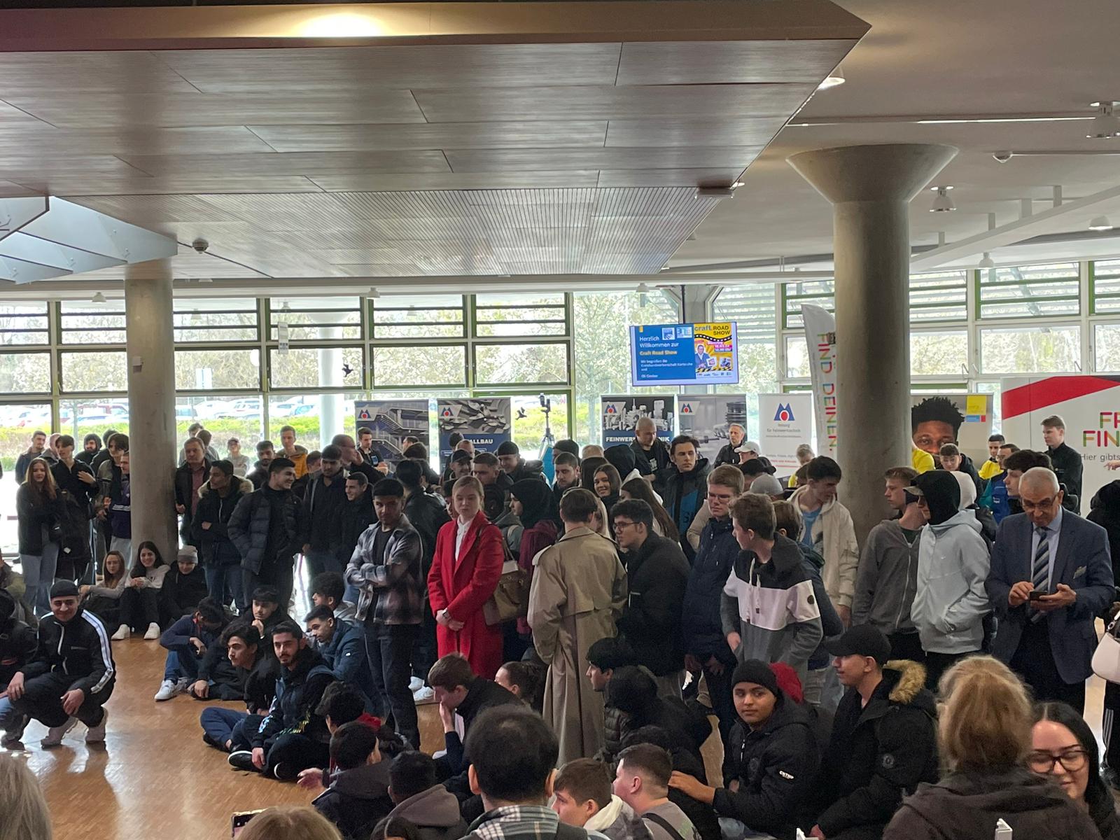 Schülerinnen und Schüler des Gewerblichen Bildungszentrum lauschten gebannt, wie der weithin bekannte Comedian und Malermeister Oliver Gimber von seinem Werdegang zum Malermeister berichtete. Spannend und unterhaltsam schilder er seinen Weg und verinnerlichte den Jugendlichen „Alles ist möglich“, aber es ist wichtig, mit dem Herzen und ganzer Leidenschaft dabei zu sein.