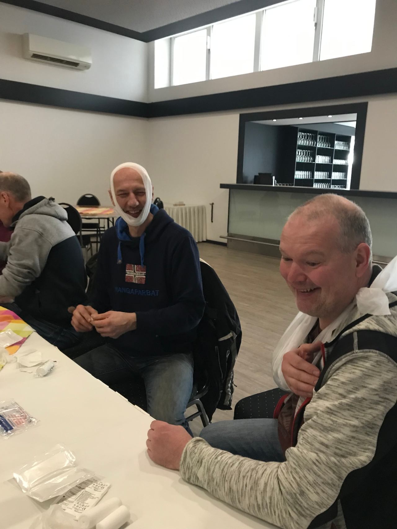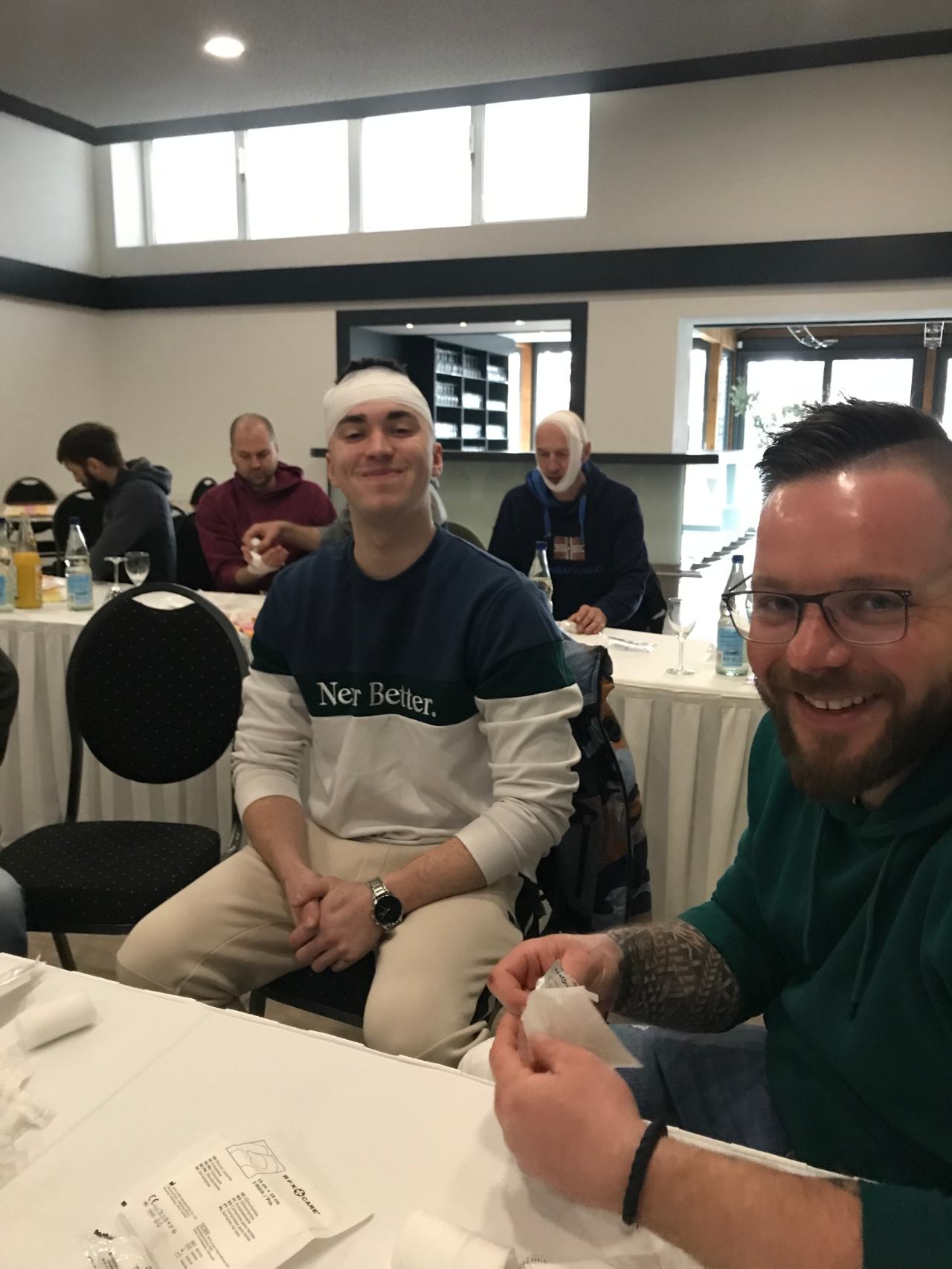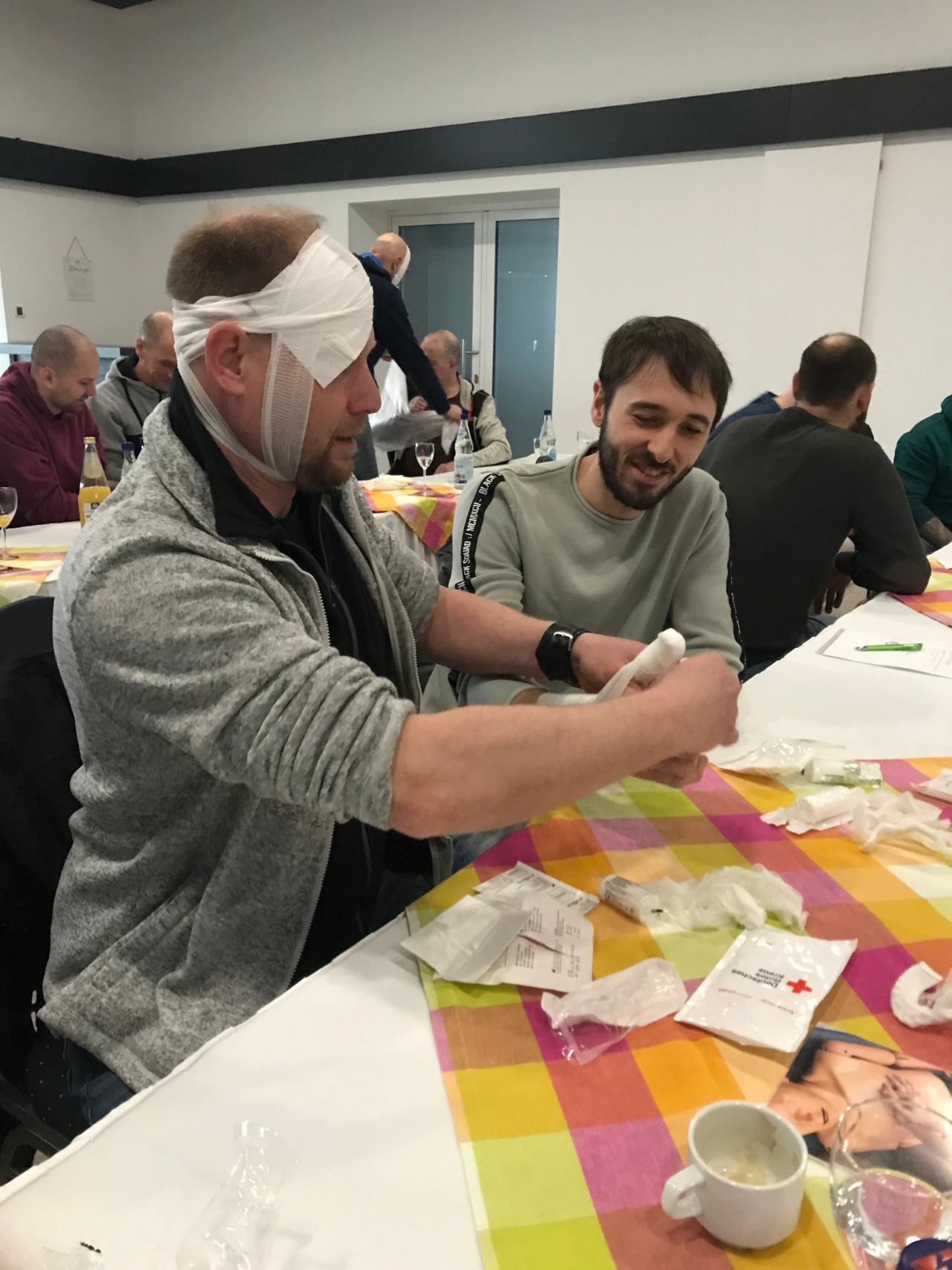 Mit vielen praktischen Übungsmöglichkeiten wurden die Teilnehmer des Ersthelferkurses fit für die Erste Hilfe im Betrieb und auf der Baustelle gemacht.