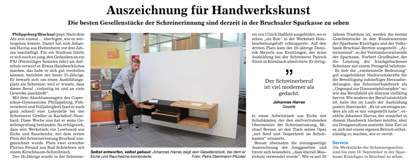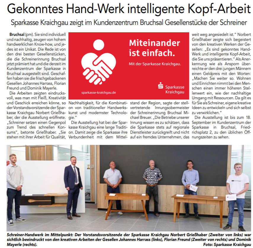 Herzlichen Glückwunsch zur bestandenen Gesellenprüfung und ein großes Lob für die kreativen und ausgezeichneten Gesellenstücke.