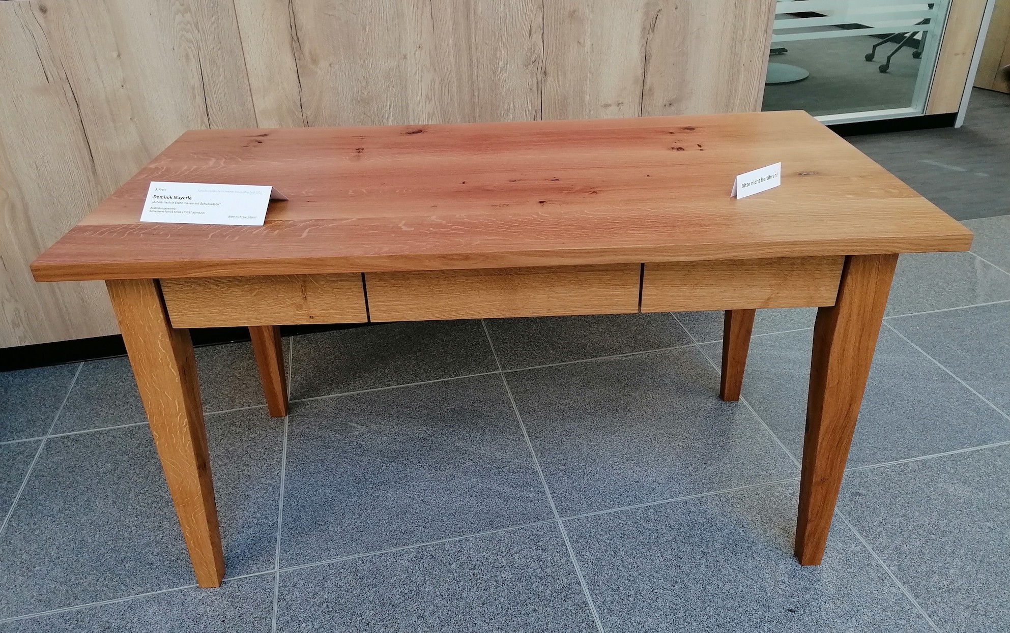 3. Preisträger Dominik Mayerle, Ausbildungsbetrieb Schreinerei Patrick Streit, Kürnbach, „Arbeitstisch in Eiche massiv mit Schubkasten“