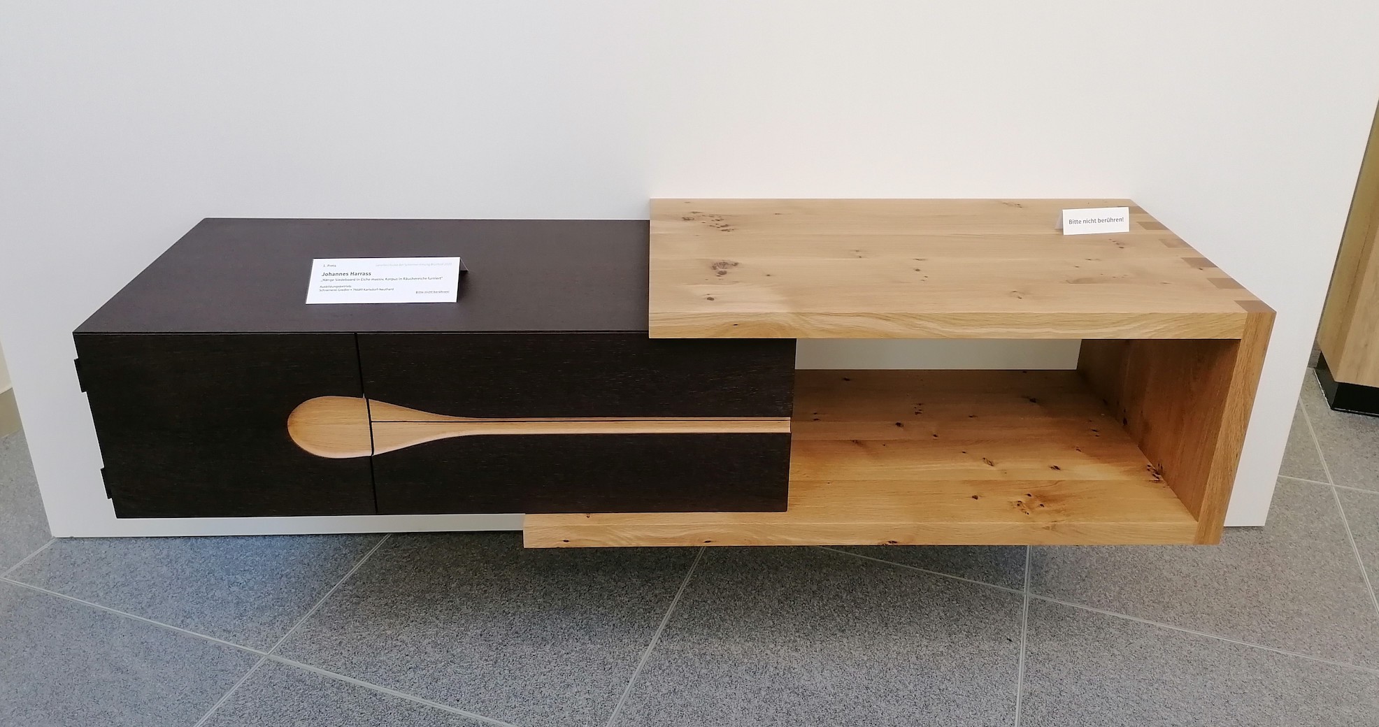 1.Preisträger Johannes Harrass, Ausbildungsbetrieb Schreinerei Gredler, Karlsdorf-Neuthard „Hänge-Sideboard in Eiche massiv, Korpus Räuchereiche furniert“