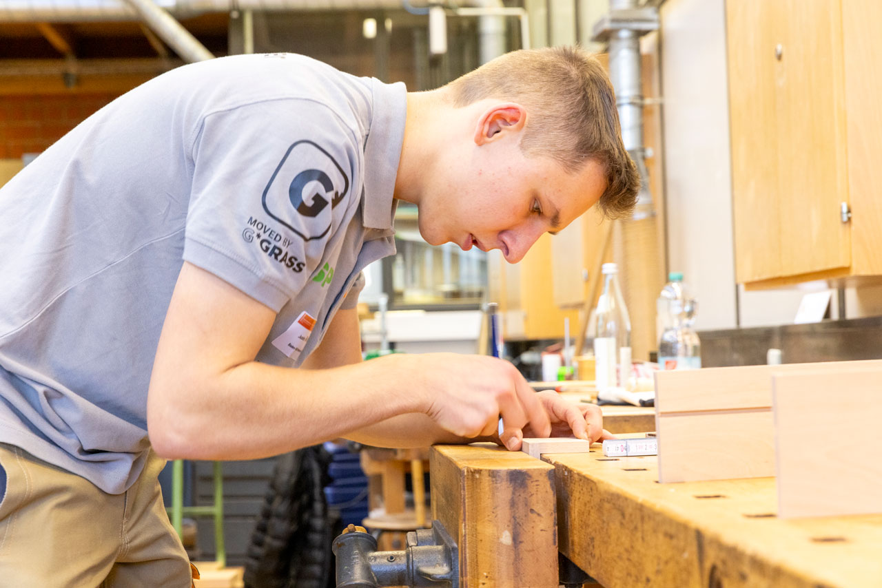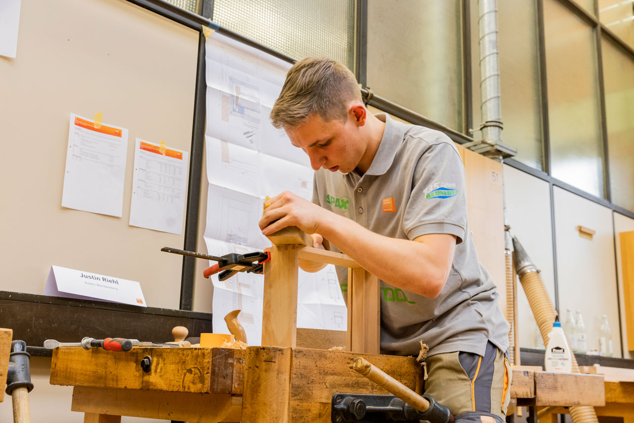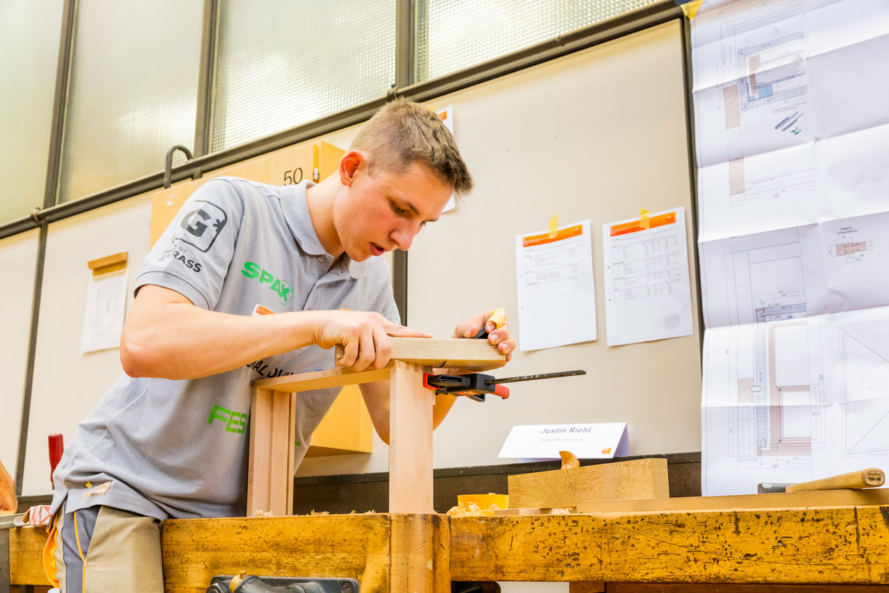 Insgesamt 18 Teilnehmer waren zum Wettbewerb angetreten: 15 Landessieger, ein zweitplatzierter Nachrücker und zwei Zweitplatzierte, die per Wildcard am Wettbewerb teilnahmen. Dieses Mal musste ein Flurmöbel mit Schubkasten gebaut werden. Zur Aufgabe gehörten neben einer Furnierarbeit auch insgesamt 18 Verbindungen – von denen acht handwerklich gefertigt werden mussten, also ohne Maschineneinsatz. 18 Arbeitsstunden beziehungsweise zwei Wettkampftage hatten sie dafür Zeit.